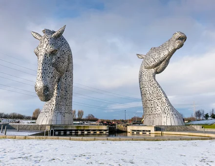 The Kelpies are colossal horse-head sculptures located in Falkirk, standing as a striking tribute to Scotland’s industrial past and its mythological heritage. These magnificent sculptures, each over 30 meters tall, capture the spirit of Scotland’s horse-powered history and have become a symbol of national pride.