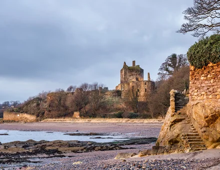 Explore the atmospheric ruins of Ravenscraig Castle, a 15th-century fortress overlooking Kirkcaldy harbour, and learn about its turbulent history as a royal residence and military stronghold.