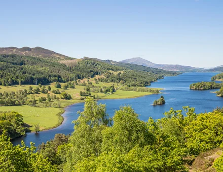 The Queen’s View is named after Queen Victoria, who visited the area in 1866, and offers stunning views over Loch Tummel and Schiehallion.