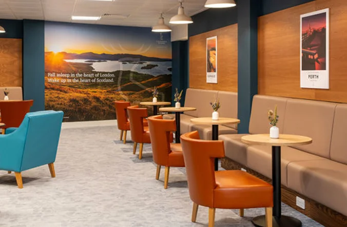 Dogs are welcome in all Caledonian Sleeper Guest Lounges but must remain on a lead and must stay off all furniture.