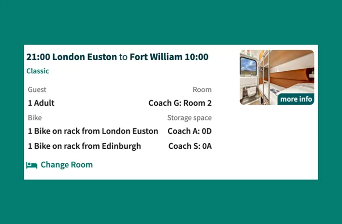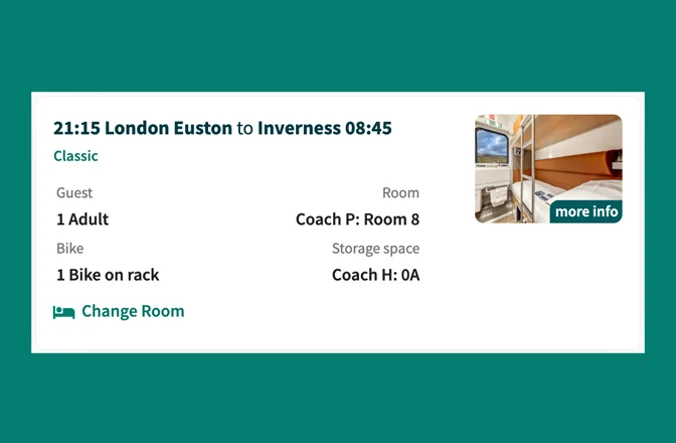 These rail tickets are only valid for travel on the Caledonian Sleeper and include a reservation for your chosen type of accommodation.