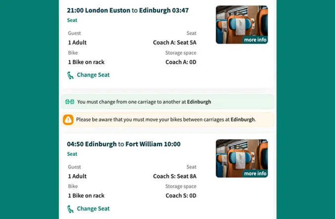 To travel in Caledonian Sleeper seated coach, you must have one of the ticket types listed above. To use these ticket types, you must also reserve a seat through our Guest Service Centre (subject to availability).