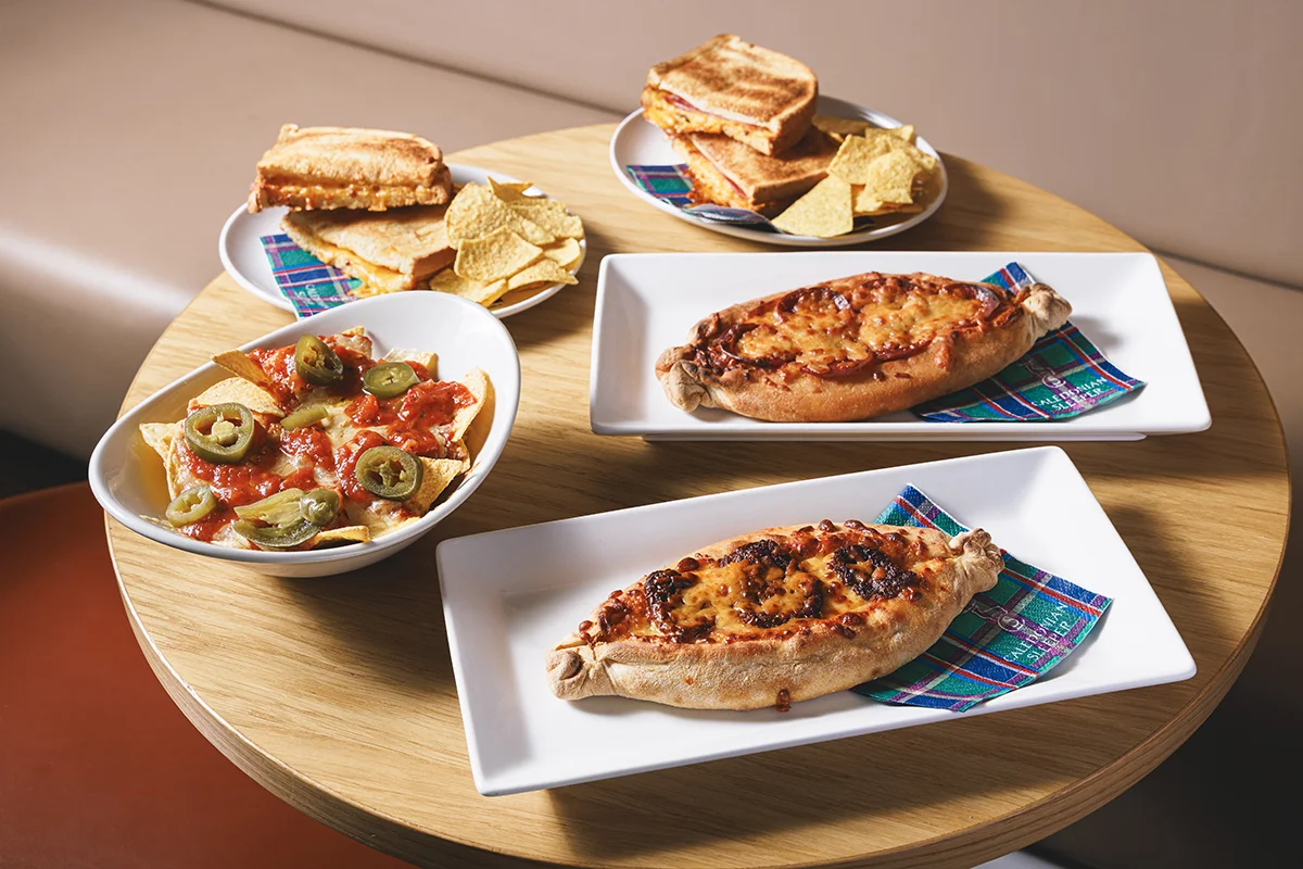 - Toasted sandwich with tortilla chips. Choose from Three cheese (Lammermuir smoked cheddar, mature cheddar and mozzarella) (V) 487 kcal or smoked ham and Lammermuir smoked cheddar 436 kcal £6
